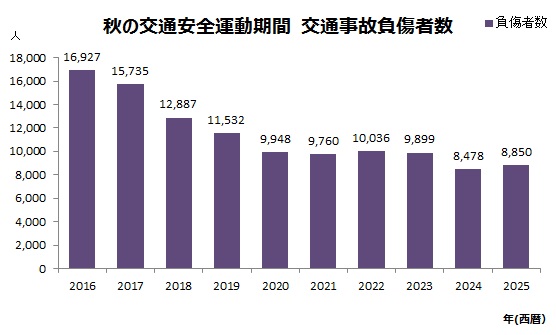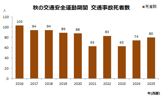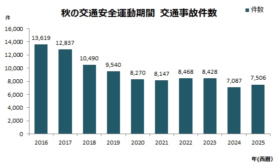 出典:警察庁・令和7年秋の全国交通安全運動期間中の交通事故発生状況