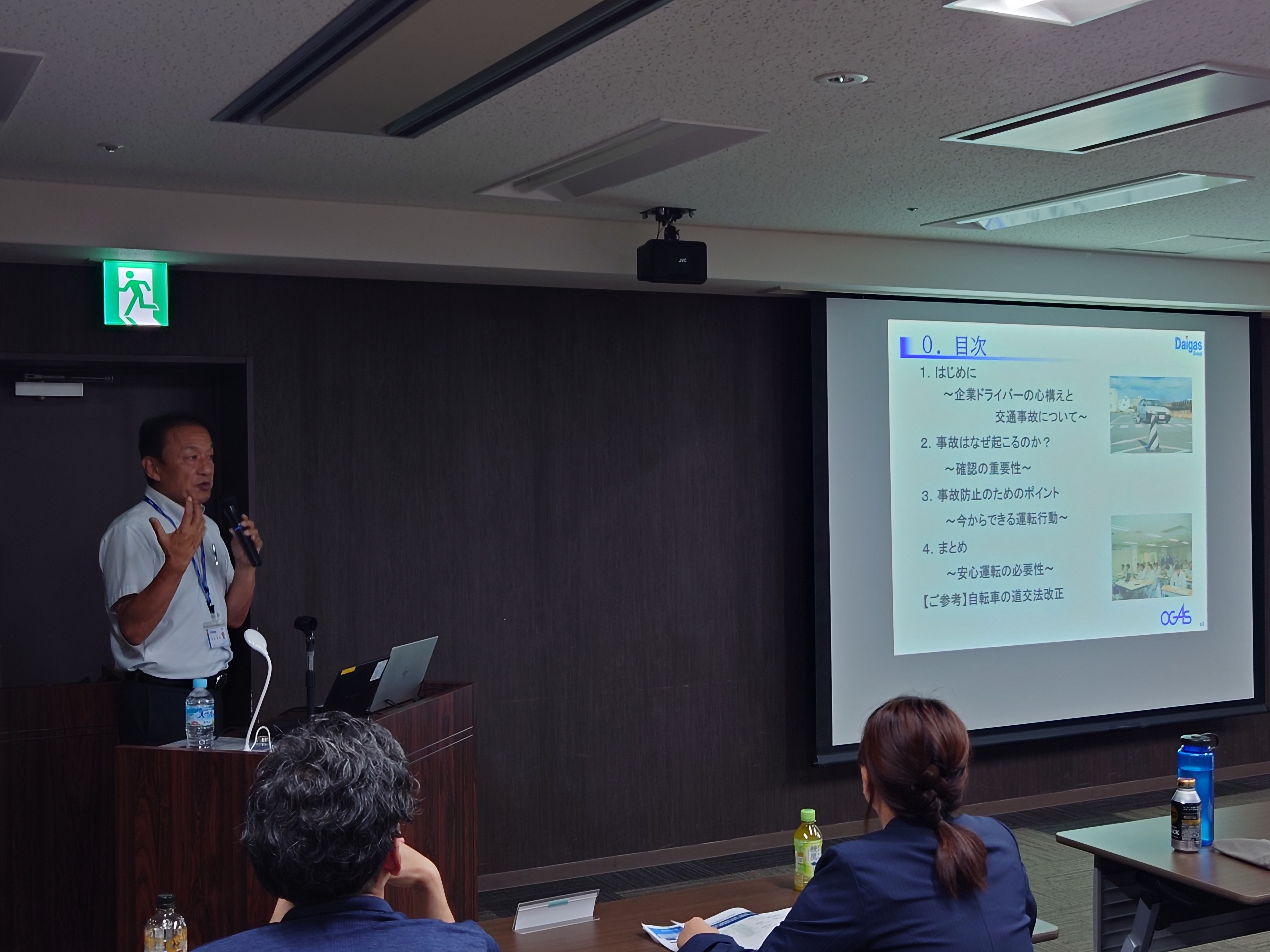 今回の社内講習会は現場に出向している方を主に対象としており、現場では日常的に車の運転が必要になっているが、その中で事故も出ている。